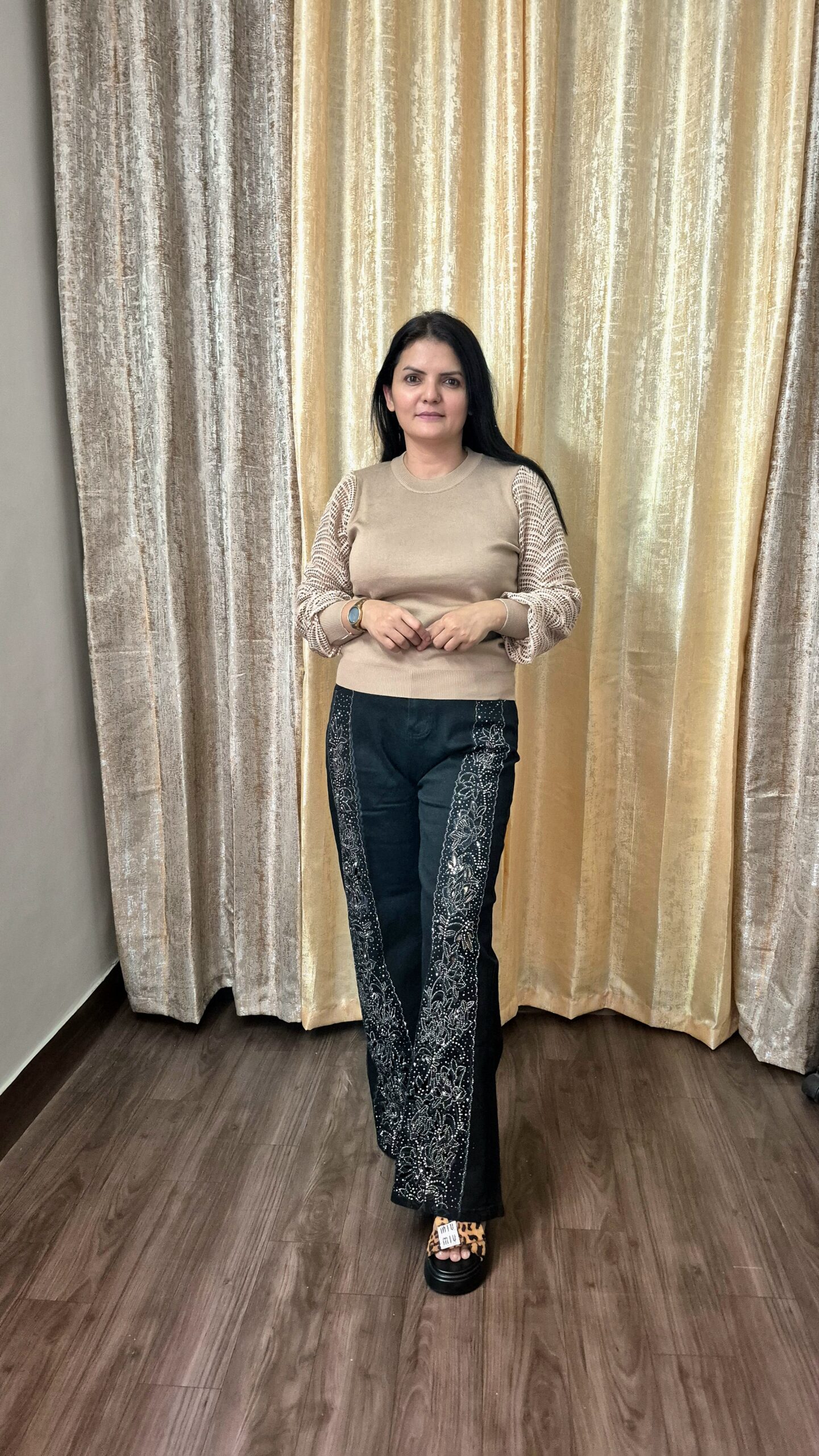 Premium Cardigan Style Top with Bow Neck Work