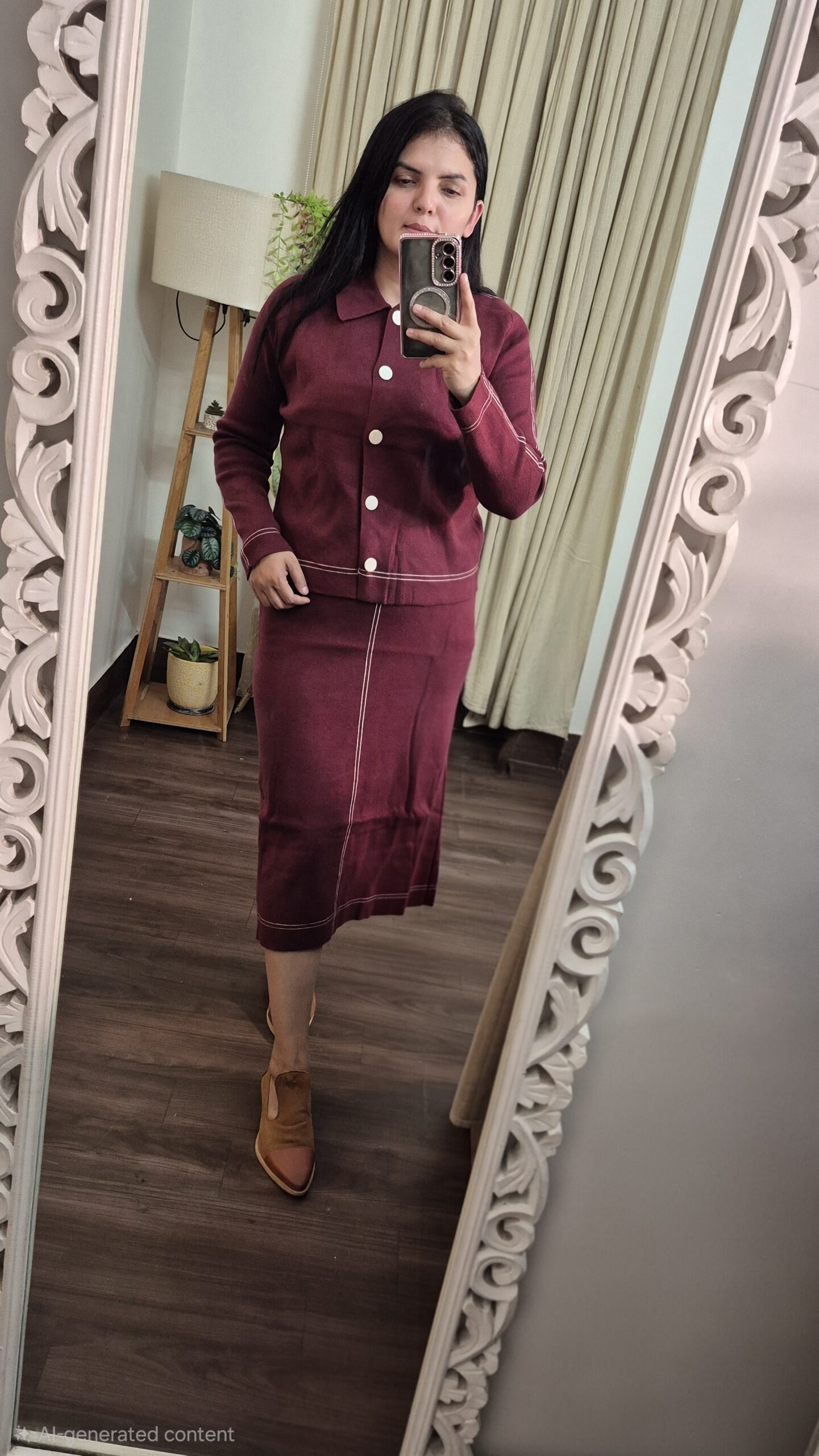 Korean Style Cardigan & Skirt Set – Neutral Winter Edit
