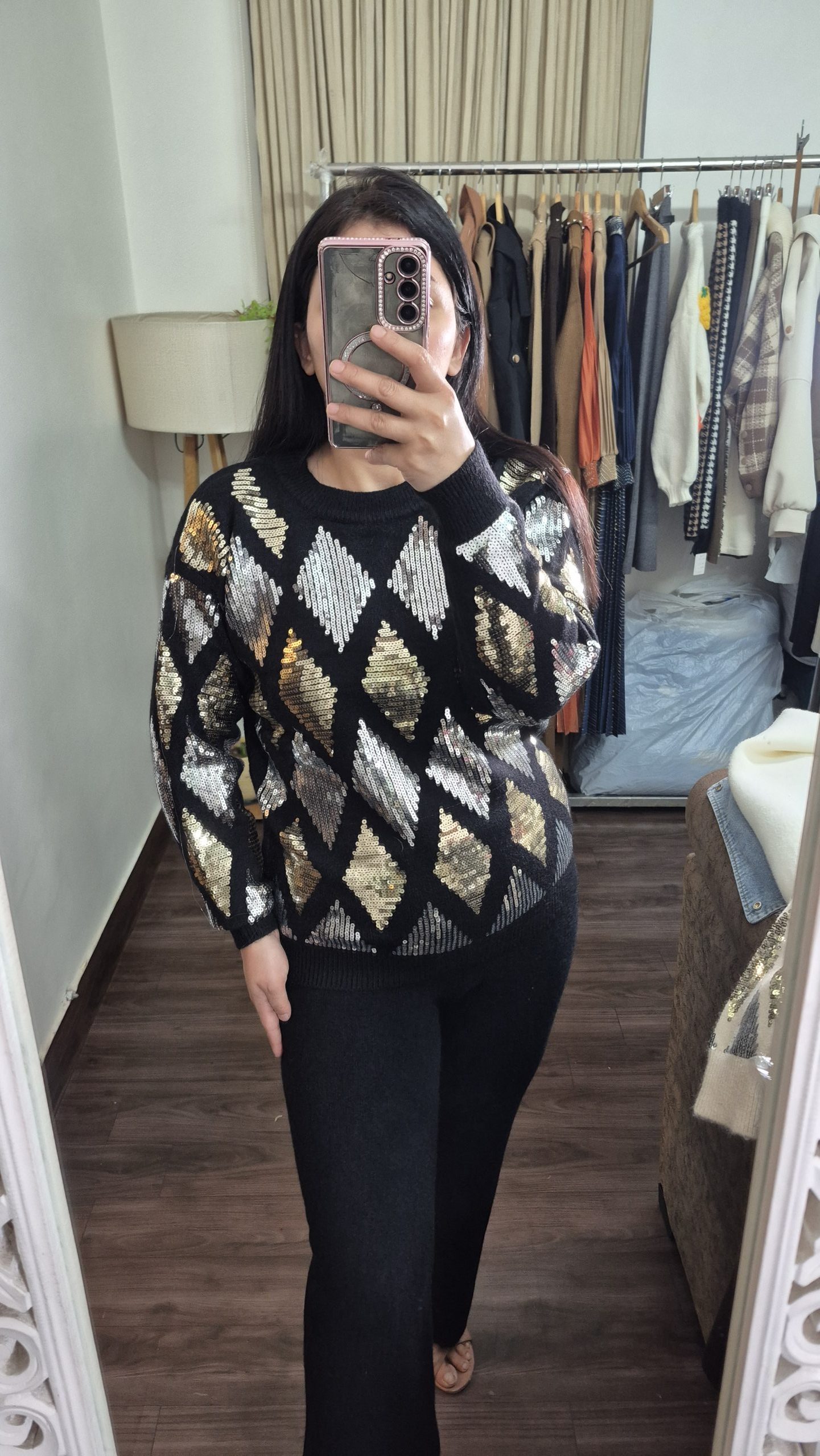 Sequined Long Sweater Dress