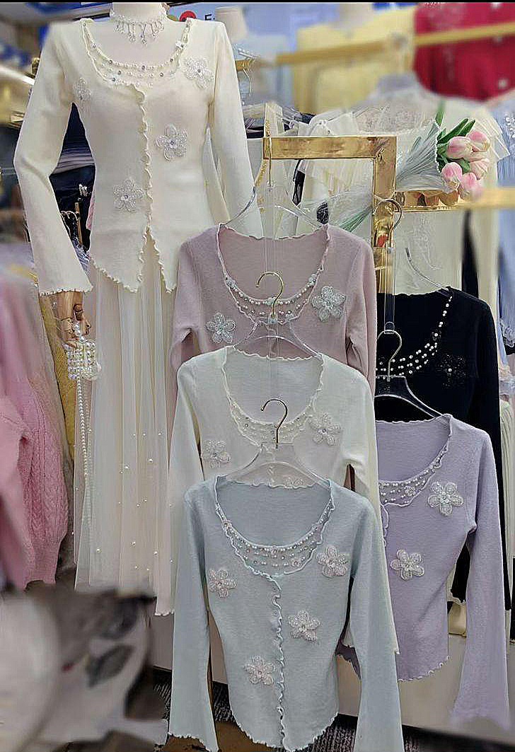 Korean Stylish Bell Sleeve Top with 3D Neck Work